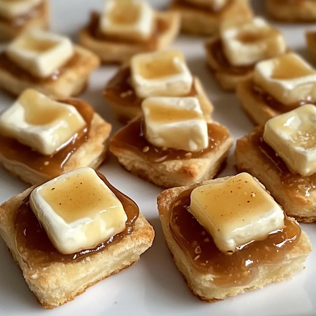 Easy sweetsavory appetizer Creamy  Apple Butter Brie Bites butter in puff pastry Perfect elegant holiday or party bite Ready fast
