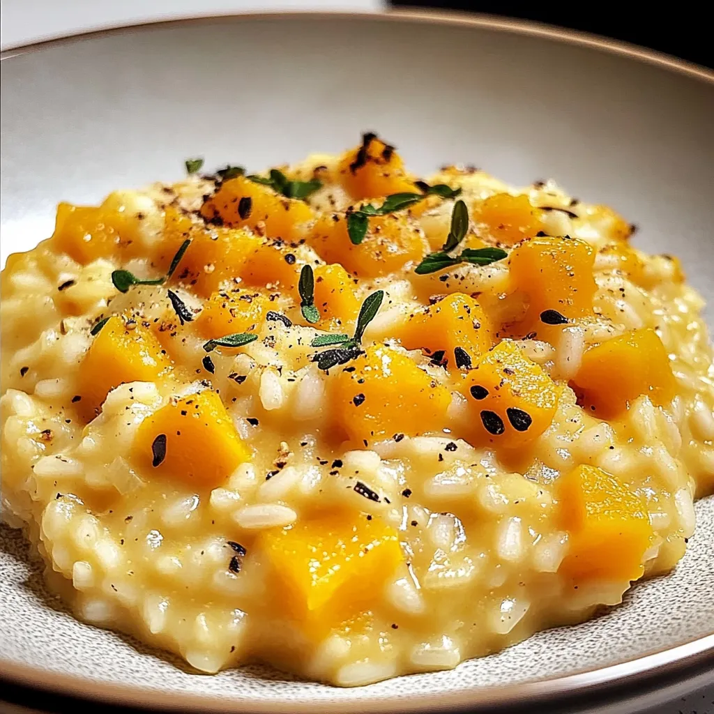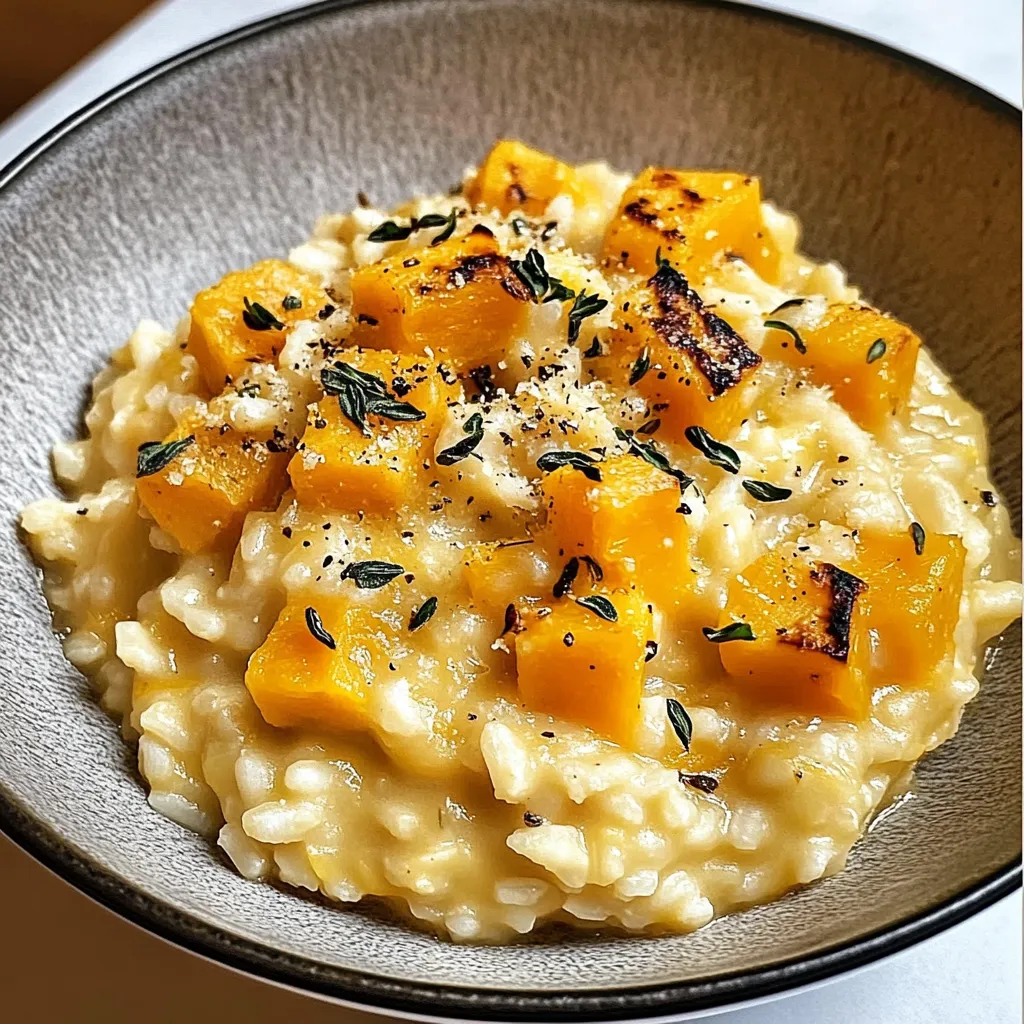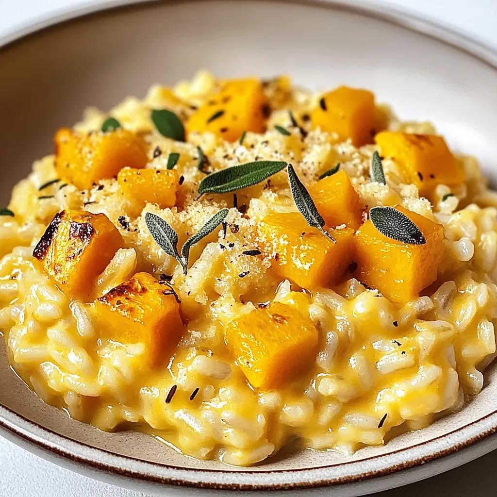 A creamy and comforting butternut squash risotto that is surprisingly simple to make, featuring sweet roasted squash, savory Parmesan, and fresh sage.