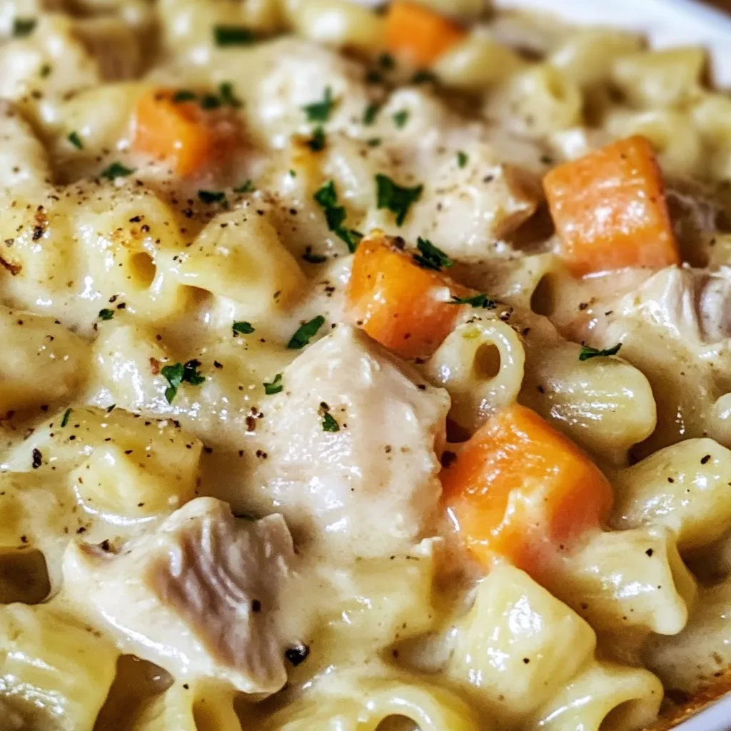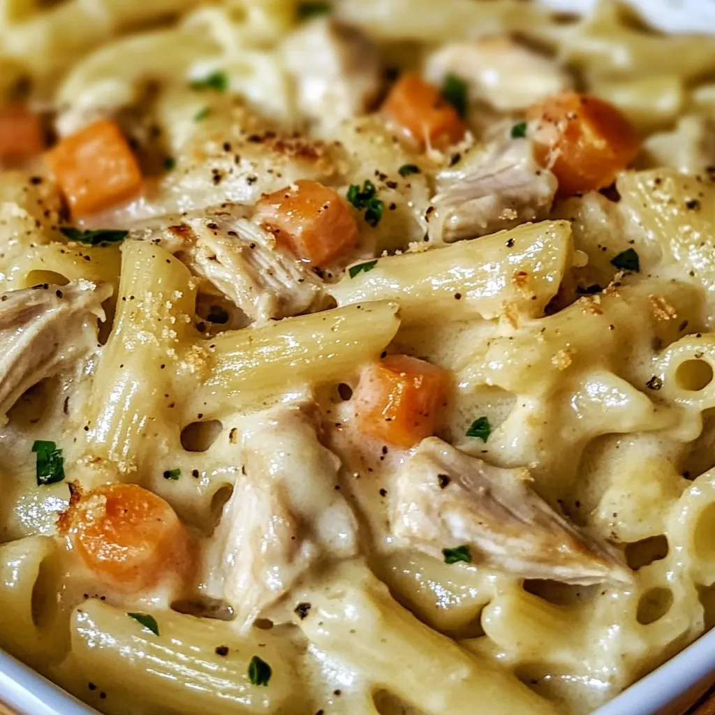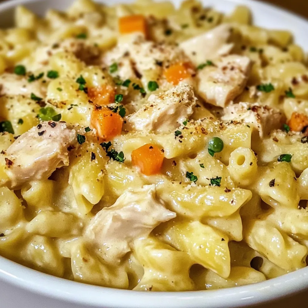 A one-pot wonder that combines the comforting flavors of chicken pot pie with easy-to-make pasta. Tender chicken, savory vegetables, and a luxuriously creamy sauce come together for the ultimate weeknight dinner.