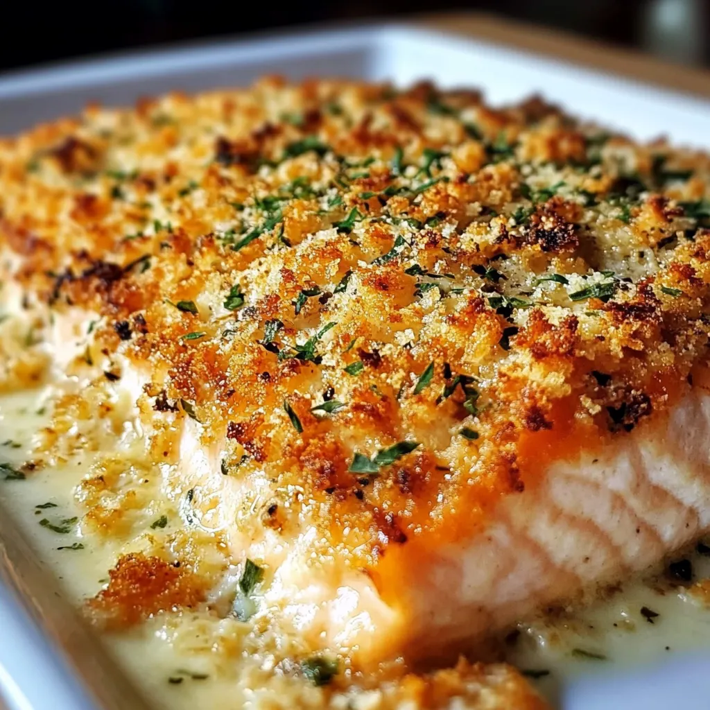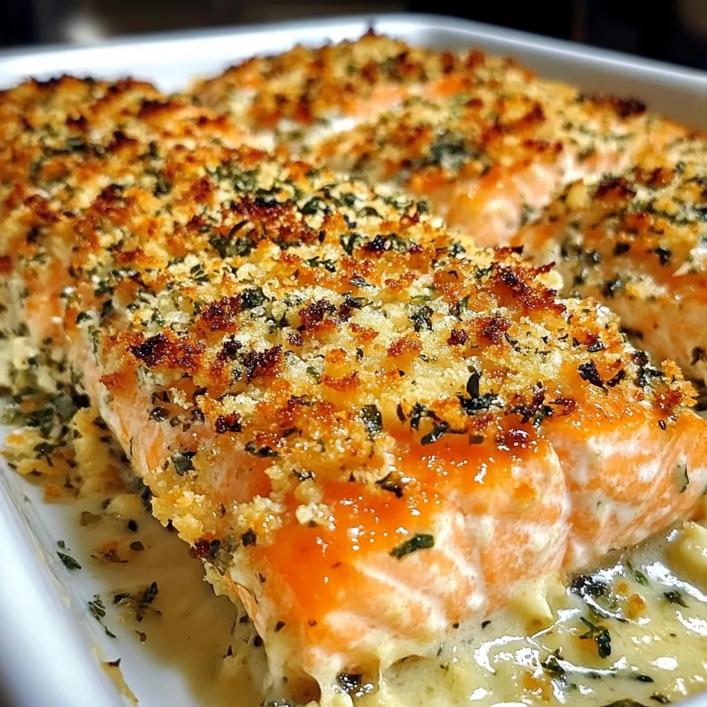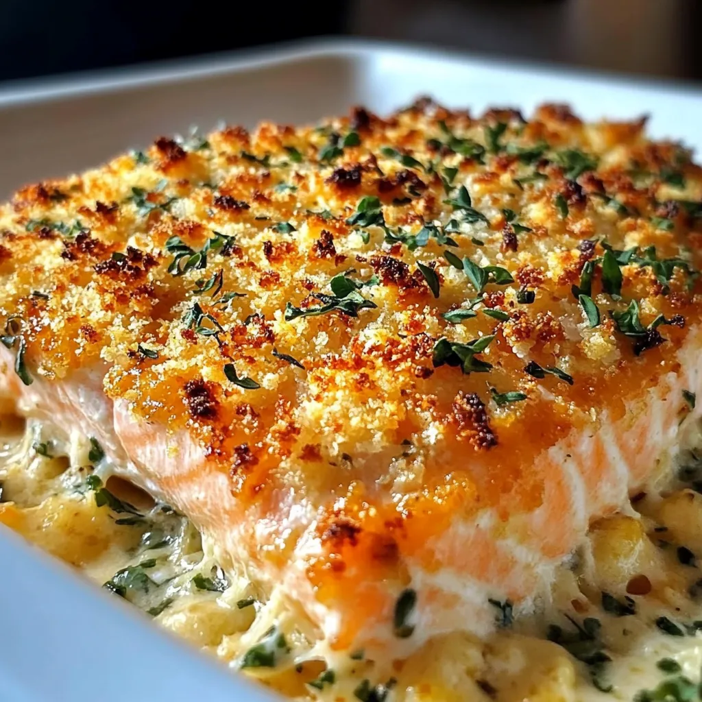 A quick and easy weeknight dinner featuring salmon fillets topped with a golden, crispy, and cheesy Parmesan-panko crust. This family-friendly recipe is ready in under 30 minutes.