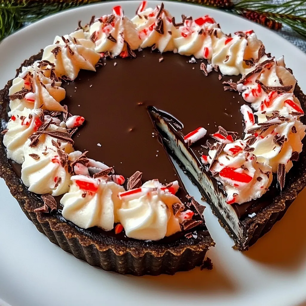 Rich dark choc peppermint mousse tart recipe A decadent chilled dessert perfect for holidays Easy nobake tech for a stunning festive treat