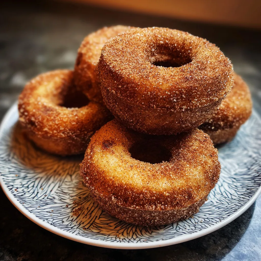 • Stir together 1/2 cup granulated sugar with 1 to 1 1/2 teaspoons cinnamon in a shallow bowl. Lightly brush warm donuts with melted butter or neutral oil, then toss in cinnamon sugar to coat.