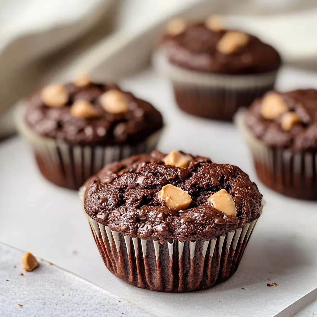 These muffins are incredible all on their own, still slightly warm from the oven. But if you want to take them to the next level, try slicing one in half and slathering a little extra peanut butter in the middle. A glass of cold milk or a hot cup of coffee is the perfect partner for this rich chocolate treat. They also make a fantastic dessert when served with a scoop of vanilla ice cream.
