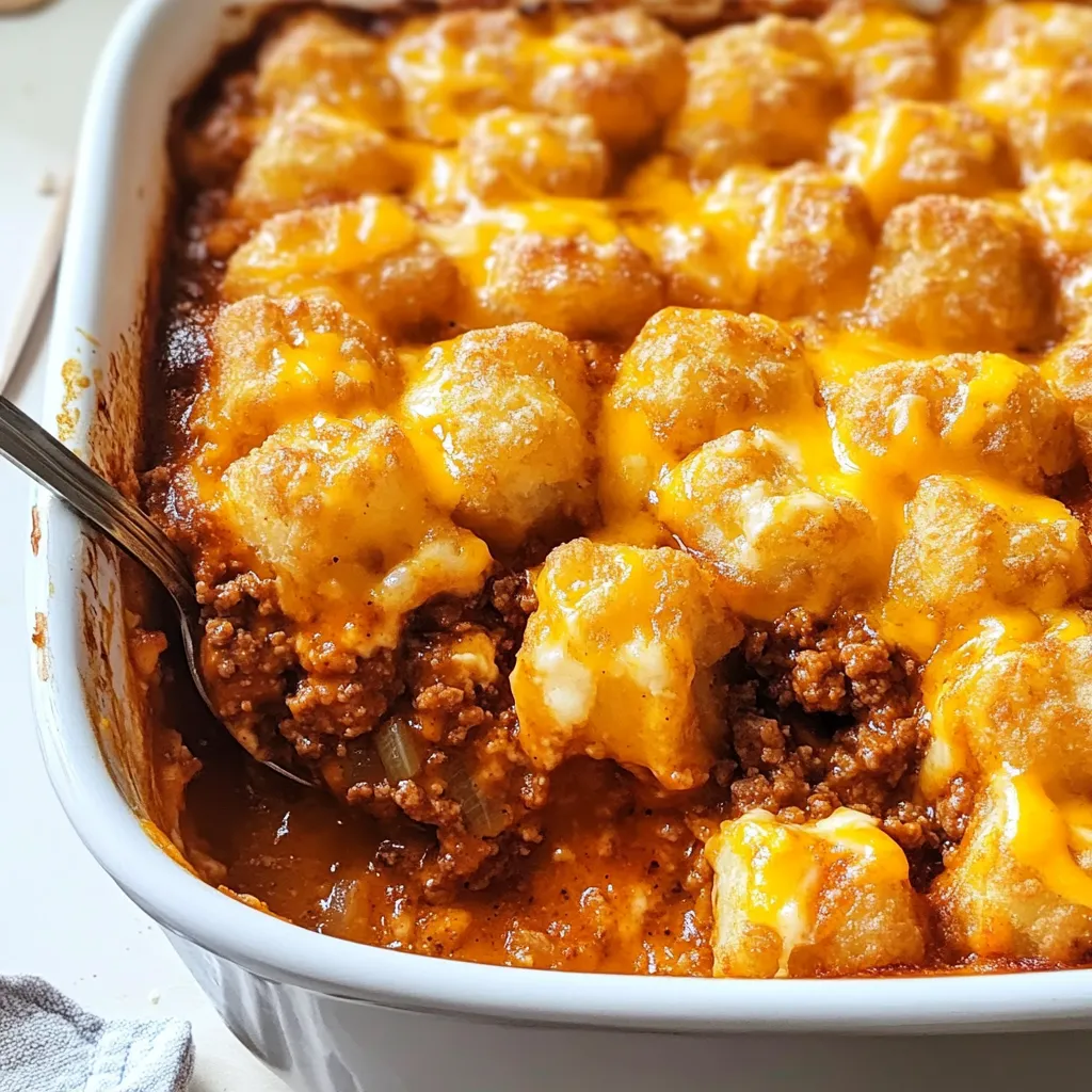 A comforting and easy gluten-free casserole that combines savory Sloppy Joe filling with a crispy tater tot and cheese topping. The perfect weeknight family dinner.