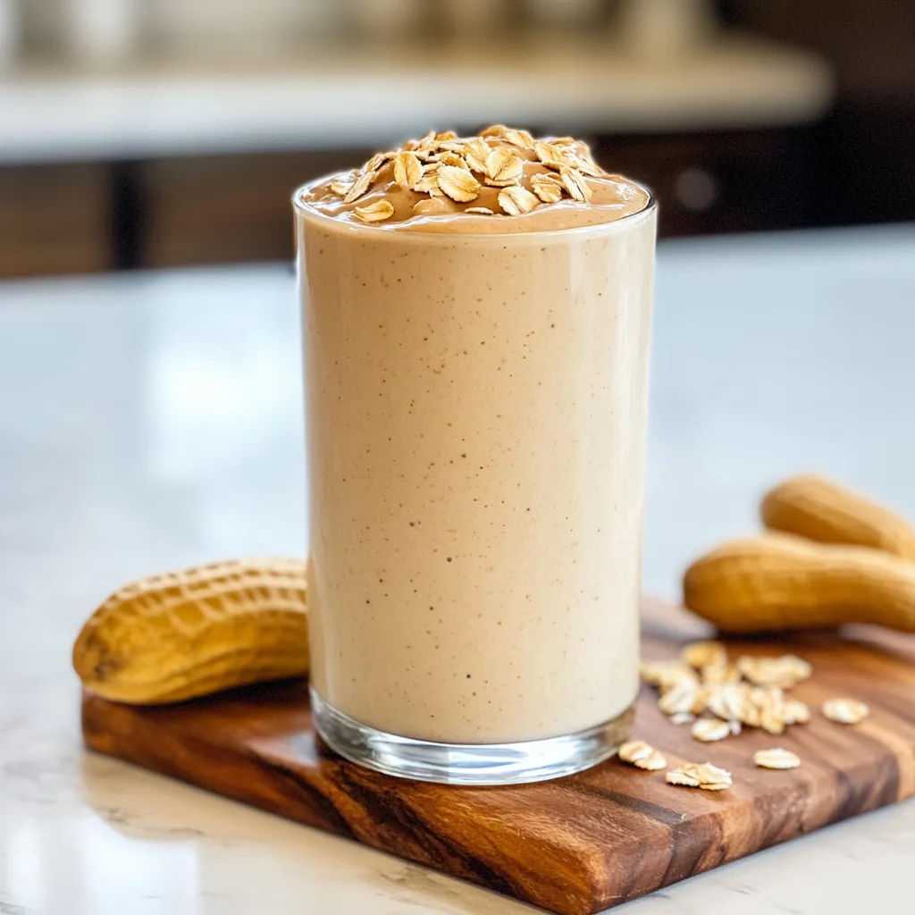 Wholesome smoothie recipe with peanut butter & oats. Boost energy & nutrition. Fast, easy, and delicious meal prep tech for your day. Perfect for breakfast.