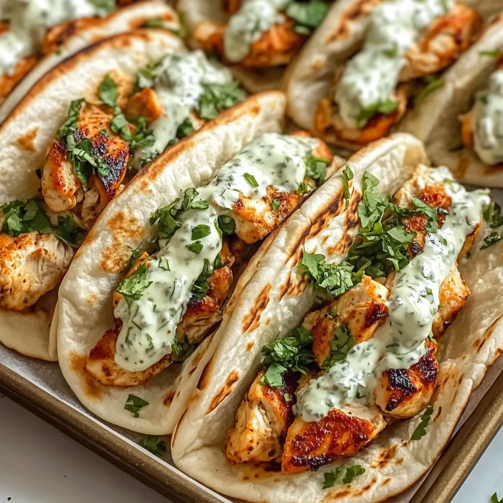 A simple and delicious one-pan meal featuring seasoned chicken and roasted vegetables served in warm pitas with a creamy homemade herby ranch sauce.