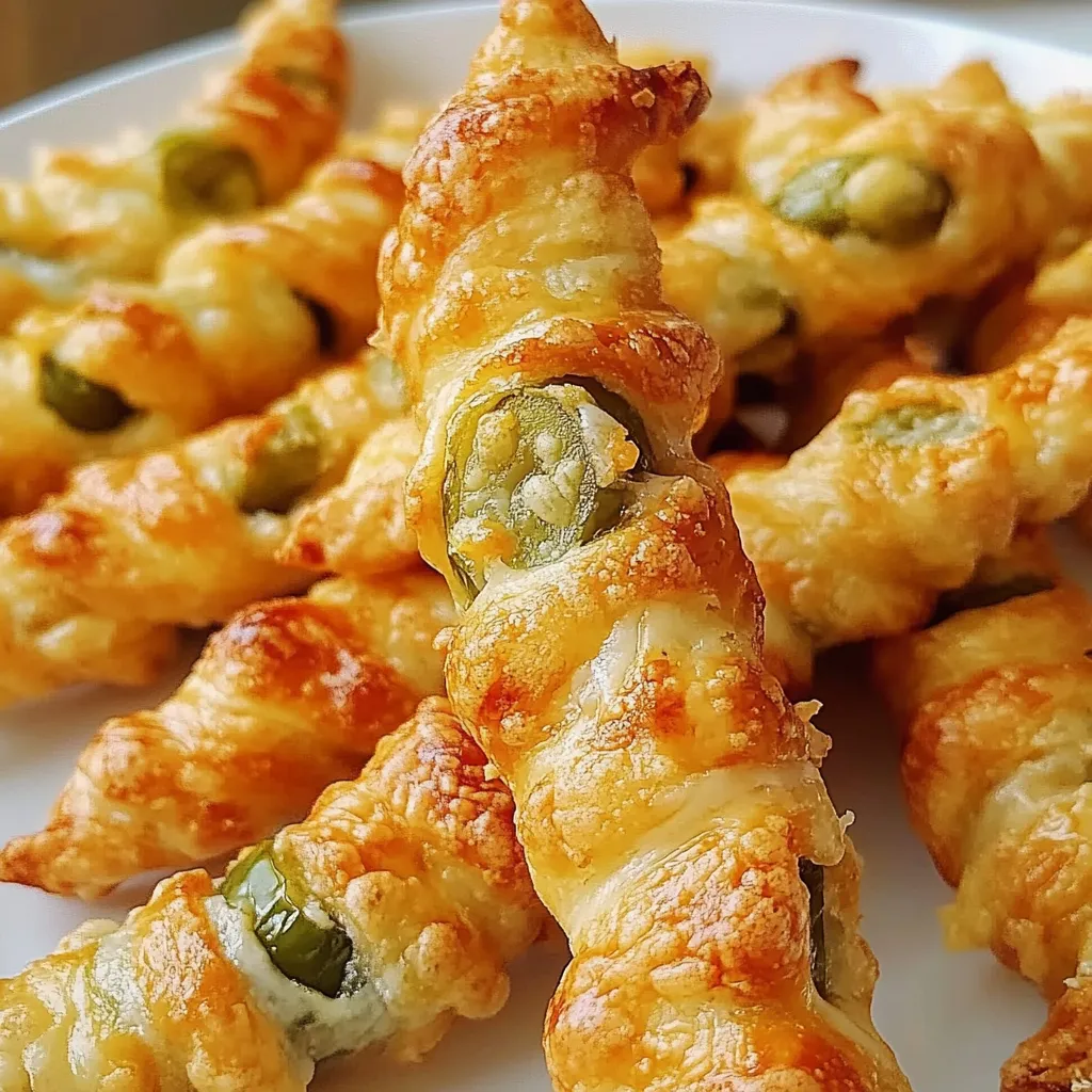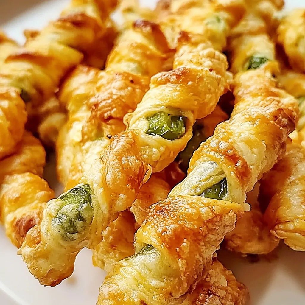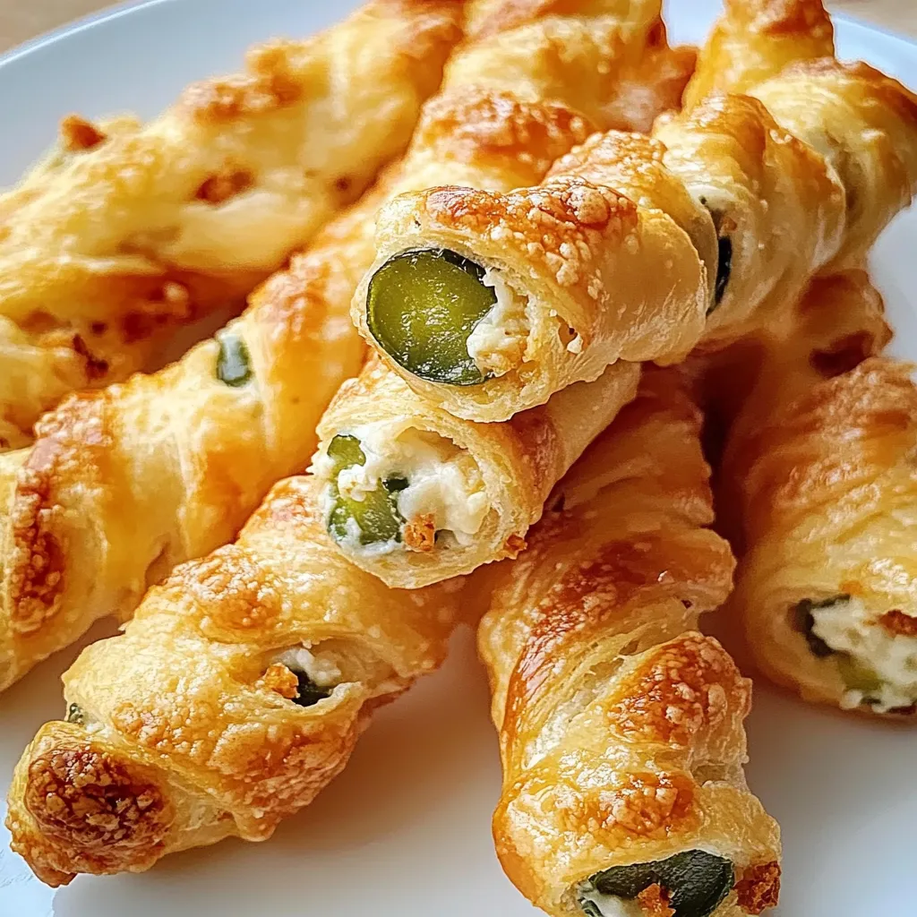 A simple and irresistible party snack featuring a creamy, spicy jalapeno and cheese filling wrapped in flaky puff pastry twists.