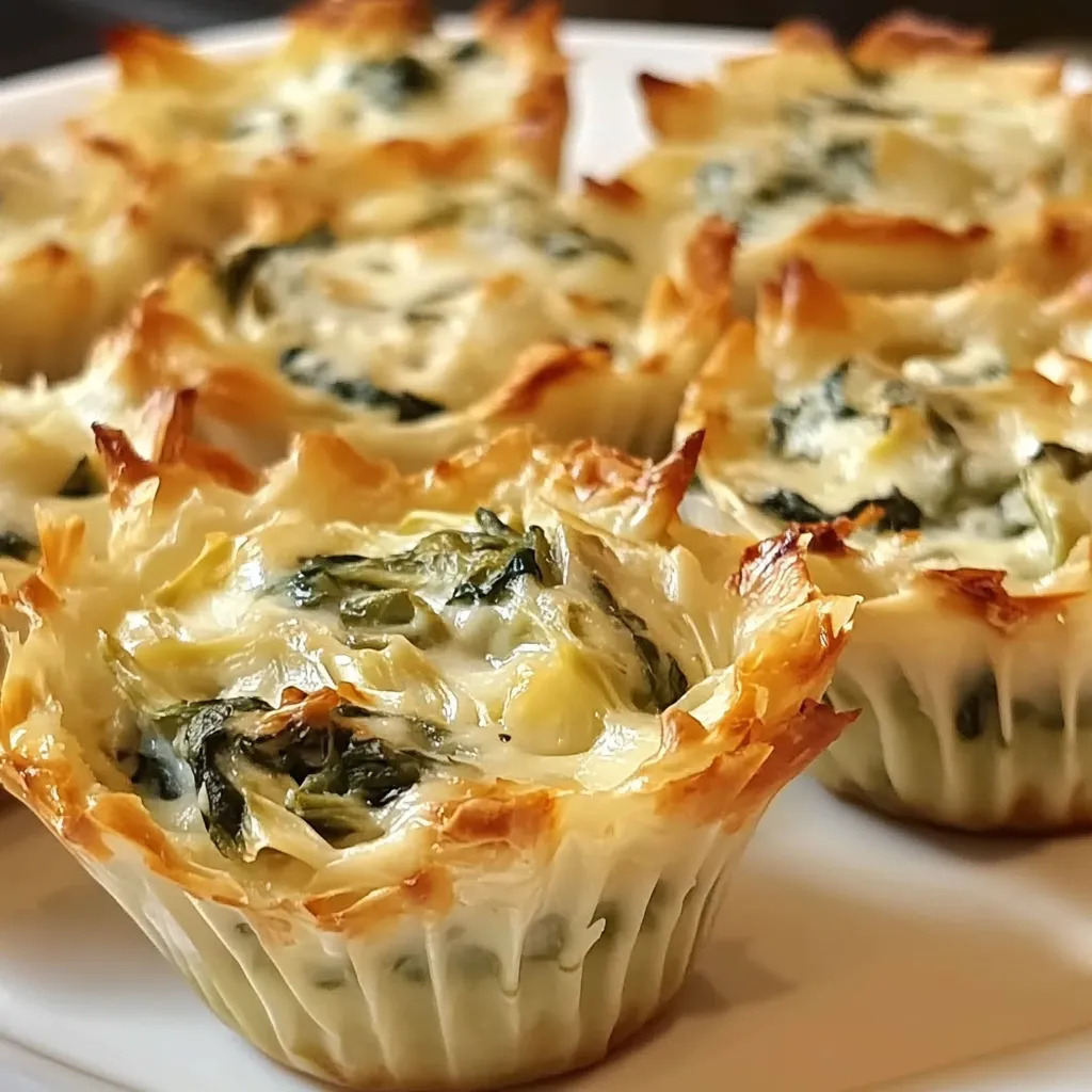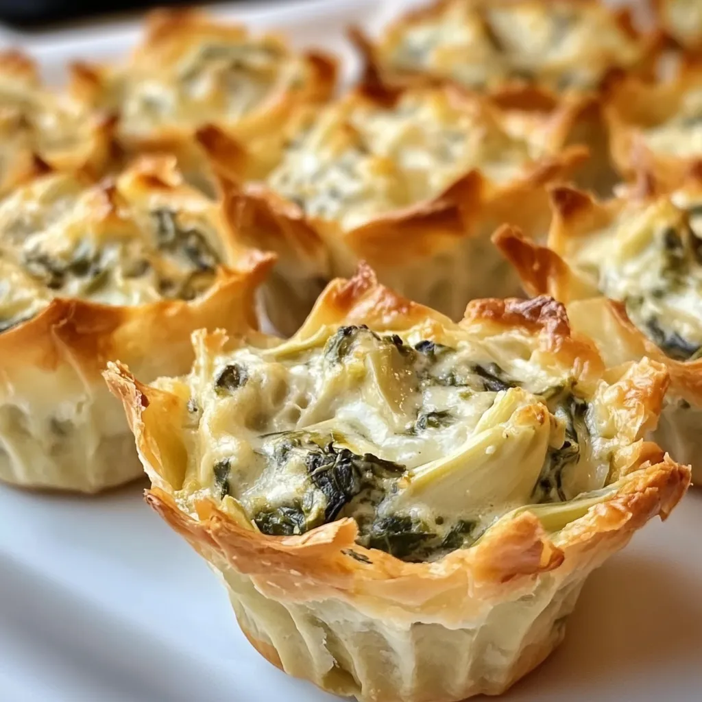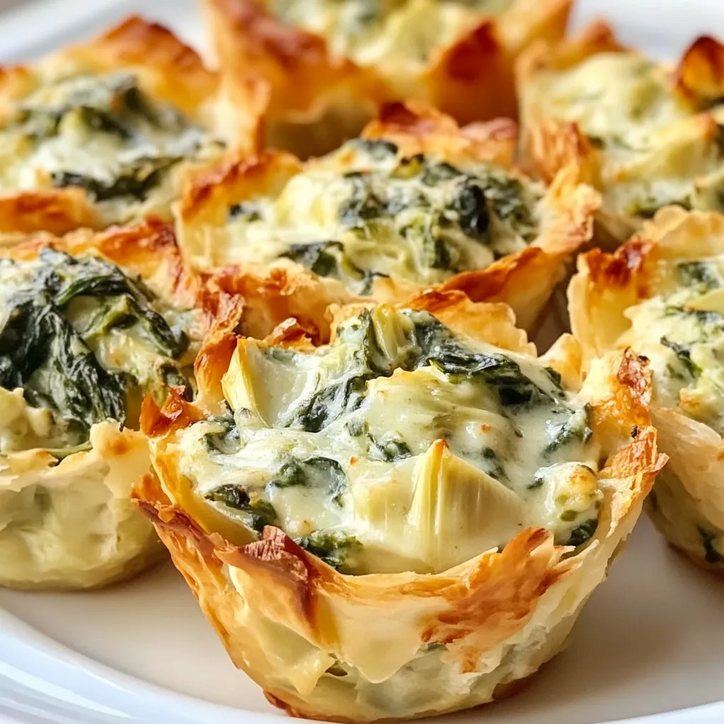 Creamy spinach artichoke dip cups recipe Perfect party appetizer Easy phyllo dough tech for a crispy shareable handheld snack