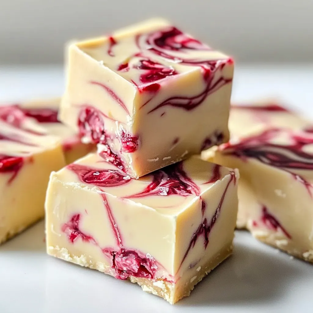 An incredibly easy and beautiful White Chocolate Raspberry Fudge recipe. This no-fuss, melt-and-set dessert is perfect for holidays, gifts, or a quick sweet treat, featuring a creamy white chocolate base swirled with tangy raspberry jam.